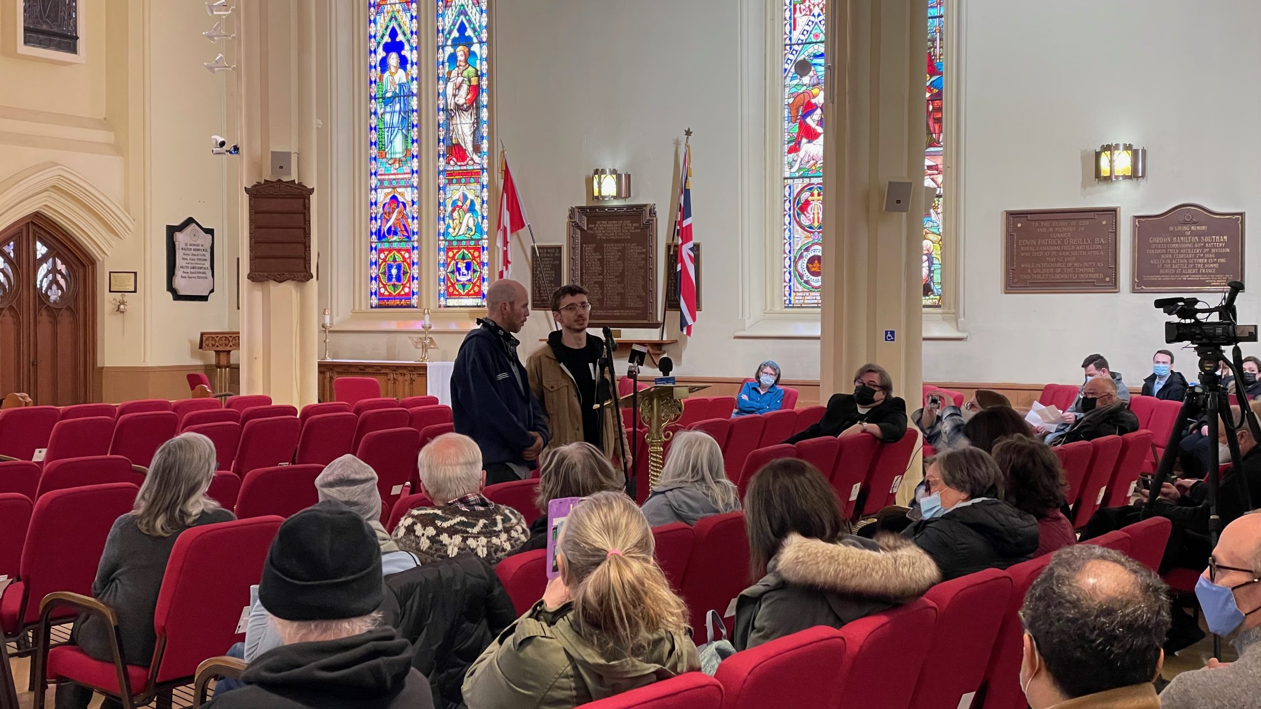 Outside, HATS coordinator Tony D’Amato Stortz spoke with interested community members and shared survey data accumulated over the past month regarding the need for a housing stopgap like the tiny shelters. A formal presentation was led inside Christ’s Church Cathedral by Archdeacon David Anderson, rector of St. John the Evangelist, Hamilton, and Deirdre Pike, diocesan Social Justice Coordinator and Senior Social Planner for the Social Planning and Research Council of Hamilton.