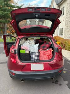 The parish hall was arranged to welcome participants into comfort and ease: a bright gathering space, dining tables draped in linens, cozy breakout rooms, and a hallway softened with pillows, camp blankets, and windows overlooking the colourful fall landscape of historic Ancaster. Leaders were encouraged to take the day as they needed, resting quietly, stepping outside, connecting with colleagues, or immersing themselves in the improvisational activities. A generous hospitality table offered fresh fruit, vegetables, snacks, baked treats, coffee, tea, and sparkling water throughout the day. Two delicious meals and a relaxed social hour with wine further expressed the gratitude held for these leaders and their ministry. Great care went into preparing the day, right down to a car packed to the brim with supplies (and even a toaster oven!), ensuring that nothing was overlooked and that everything needed for the full ten-hour day was on hand.