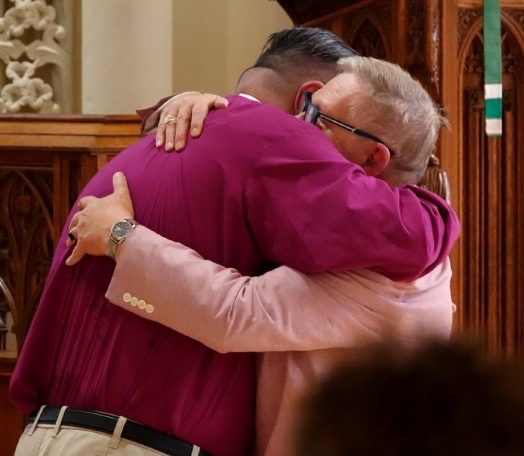 Bishop Bill Cliff congratulates his fellow Cantor.